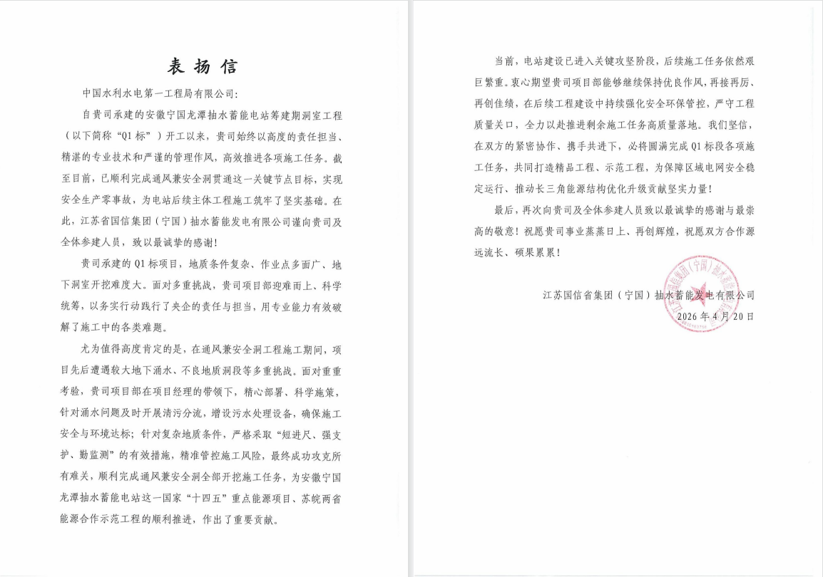 4月21日,由公司承建的安徽寧國龍?zhí)冻樗钅茈娬就L兼安全洞實現(xiàn)貫通。該節(jié)點的完成標志著項目地下洞室群施工取得階段性進展,為后續(xù)地下廠房開挖及機電安裝等工作面的展開提供了通道條件。 通風兼安全洞兼具施工通風、人員安全疏散、物料運輸?shù)裙δ?。針對施工期間面臨的地質(zhì)條件復雜、圍巖穩(wěn)定性差異大、洞內(nèi)作業(yè)空間受限等情況,項目部優(yōu)化施工組織設計,采用光面爆破、超前支護、動態(tài)監(jiān)測等工藝,嚴格控制開挖精度與支護質(zhì)量,保障了施工安全與進度。 施工過程中,項目部落實安全生產(chǎn)責任制與綠色施工要求,規(guī)范現(xiàn)場作業(yè)管理,貫通軸線偏差控制在規(guī)范允許范圍內(nèi)。近日,建設單位江蘇國信集團就此節(jié)點發(fā)來表揚信。 安徽寧國龍?zhí)冻樗钅茈娬臼菄摇笆奈濉敝攸c能源項目、皖蘇能源合作示范工程,總裝機容量120萬千瓦,總投資83.44億元。項目建成后,將承擔電網(wǎng)調(diào)峰、填谷、調(diào)頻、調(diào)相及應急備用等任務,助力長三角綠色低碳發(fā)展。 下一步,項目團隊將按計劃推進后續(xù)各項工序,確保工程節(jié)點按期履約。 |